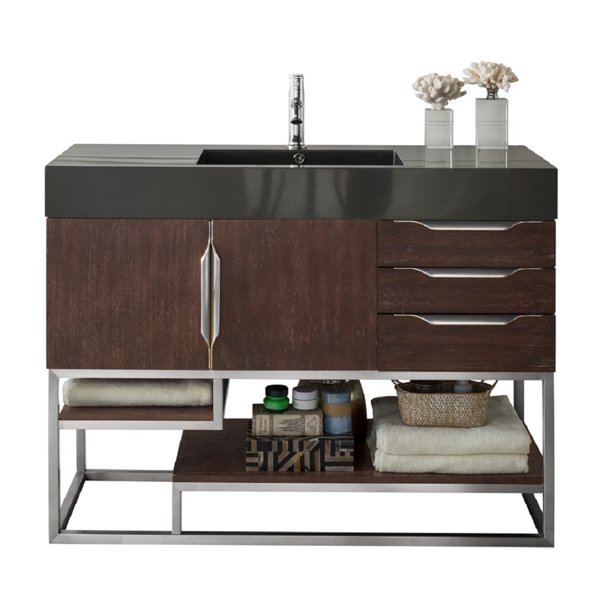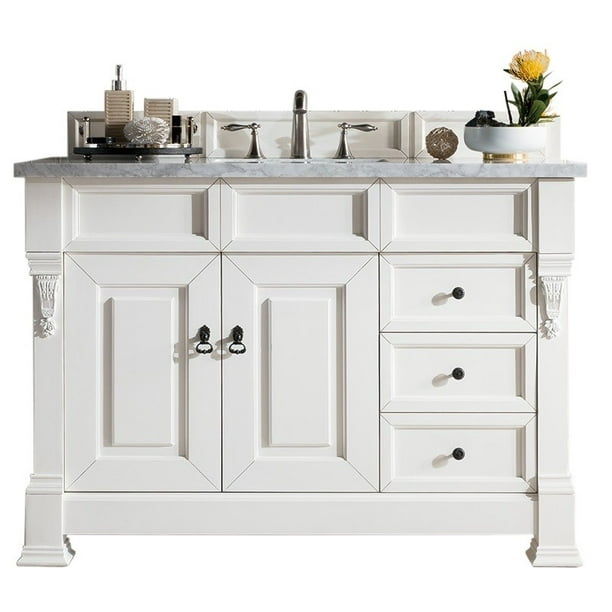 Vintage vanilla single vanity features a full plinth base, also known as a toe kick or pedestal base, this wraparound base allows for quick clean ups. 48 single bathroom vanity in grey with marble top and round sink, 48 inches, gray. James martin vanities is a homeowner favorite! James martin has countertops in the following colors: When you get a higher quality bathroom vanity, you notice it in the construction of the cabinet.